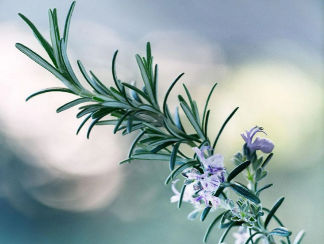 迷迭香(Rosmarinus officinalis L.),属唇形科迷迭香属多年生常绿亚灌木。幼枝呈四棱形,密被白色星状细绒毛;老枝呈网柱形,褐色;迷迭香叶片背部呈深绿色、平滑;叶片腹面呈银白色,有细小绒毛,有鳞腺;茎呈圆柱形,皮层暗灰色;叶常常在枝上丛生,有极短的柄或无柄,叶片线形;花萼呈卵状钟形,花冠蓝紫色。