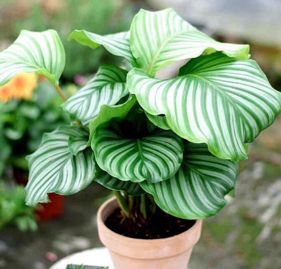 孔雀竹芋,又叫蓝花蕉、五色葛郁金。是竹芋科、肖竹芋属的多年生常绿草本植物,原产于热带美洲及印度洋的岛域中。孔雀竹芋的株形规整,叶面富有美妙精致的斑纹、独特的金属光泽。孔雀竹芋是竹芋中的一个品种,叶子上面有好看的像孔雀羽毛一样的花纹。