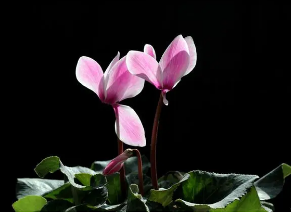 仙客来,报春花科仙客来属的多年草本植物。全株无毛;块茎扁球形,棕褐色;叶为卵圆形,有细圆齿;花葶高15—20厘米,花萼为三角形或长圆状三角形,花冠白或玫瑰红色。