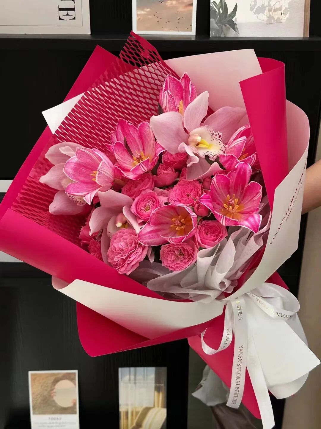爆款花束,有时也称为“豪华花束”或“精选花束”,是一种装饰精美、极具视觉吸引力的花束。