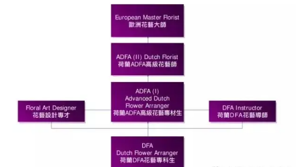 DFA证书由VBW专业实务艺工业组织颁发,获得荷兰业部官方认可,其资格亦为欧洲花艺设计师的认证标准