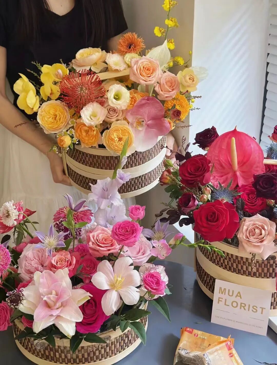 花束和花篮:可以选择将花束或花篮作为花礼的形式。花束适合个人赠送,花篮则适合整个家庭或团体的共享。