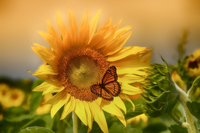 太阳花以其巨大的黄色花朵和棕色中心而著名,象征着希望和温暖。