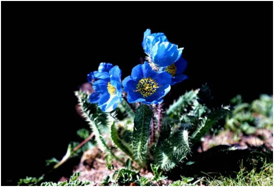 蓝花绿绒蒿是不丹国的国花。蓝花绿绒蒿最震撼人心,蓝得发紫的花瓣,充满了神秘的高贵感,像蓝宝石一样耀眼。绿绒蒿为了适应严寒气候,长出了一身绒毛,就像人穿上御寒的毛衣
