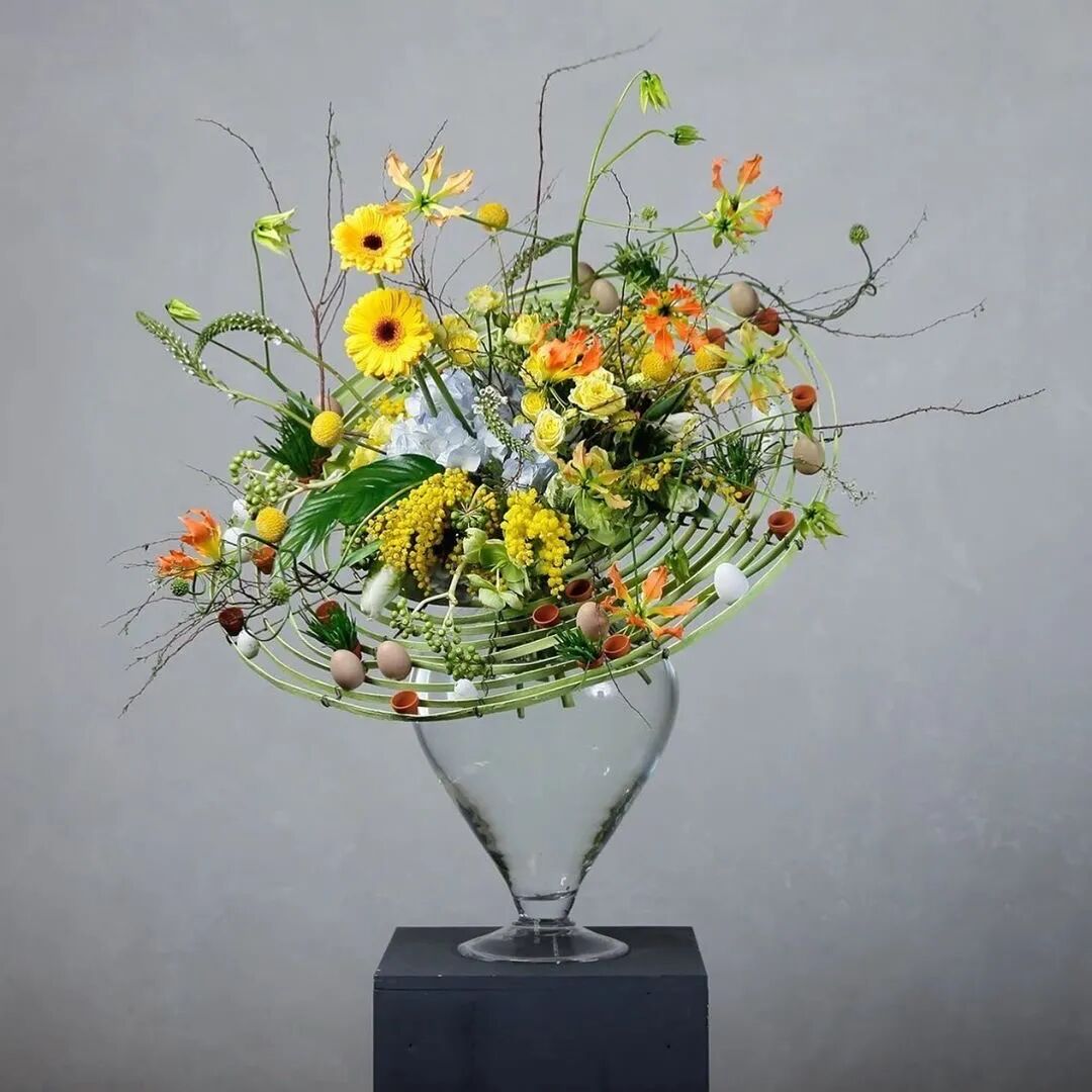 德式架构花艺,通过对不同的素材进行塑形后再构建一个主题框架,在主题框架的基础上创作鲜切类的一种插花艺术。