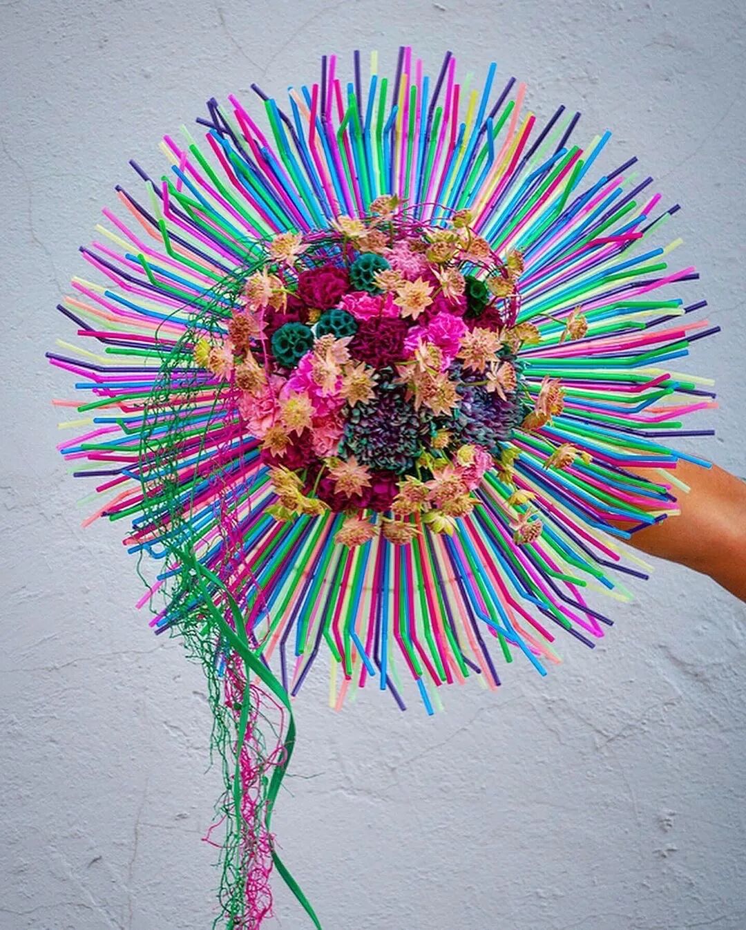 在欧洲,人们对花艺追求的不仅是运用花泥的设计或几何造型的设计。人们开始打破花瓶的限制,将建筑艺术运用到花卉造型设计当中,开始追求一种“更有自由感、更有动感”的设计。