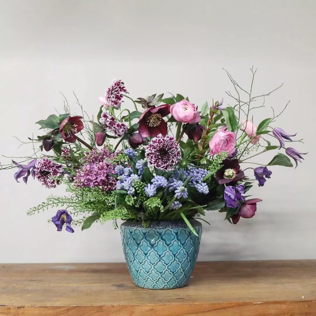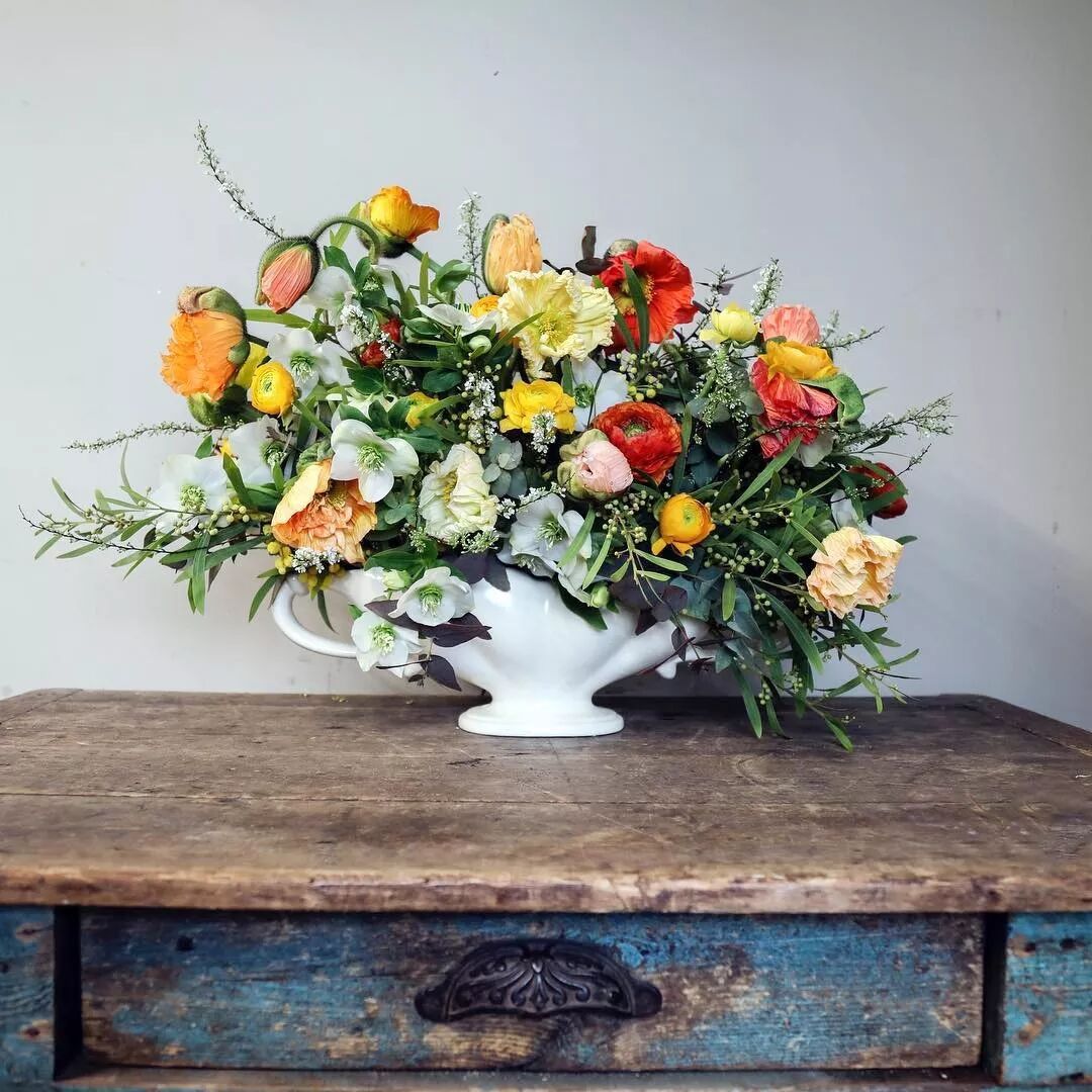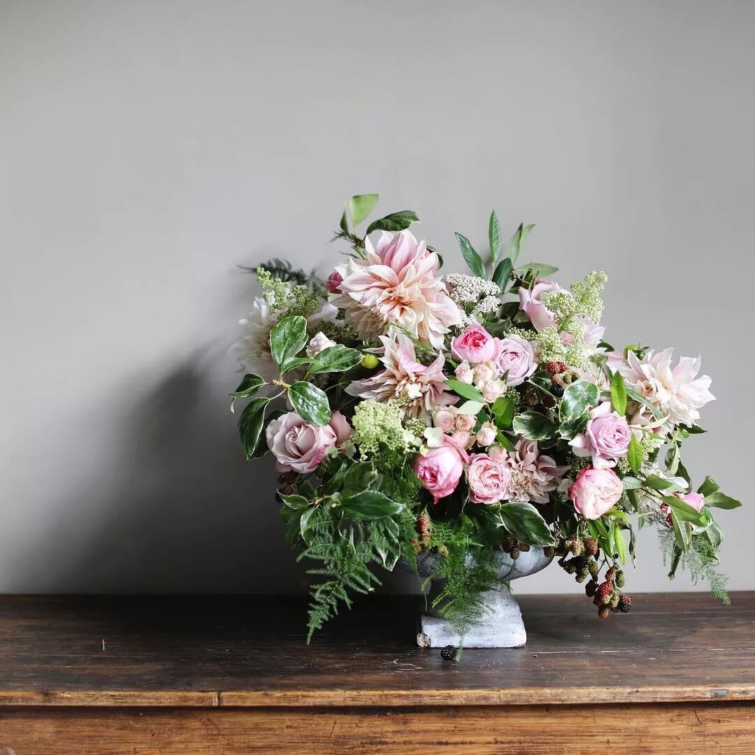 使用复古容器,英式花艺经常将花束放在复古风格的花瓶或容器中,以增加浓厚的英国乡村风情。