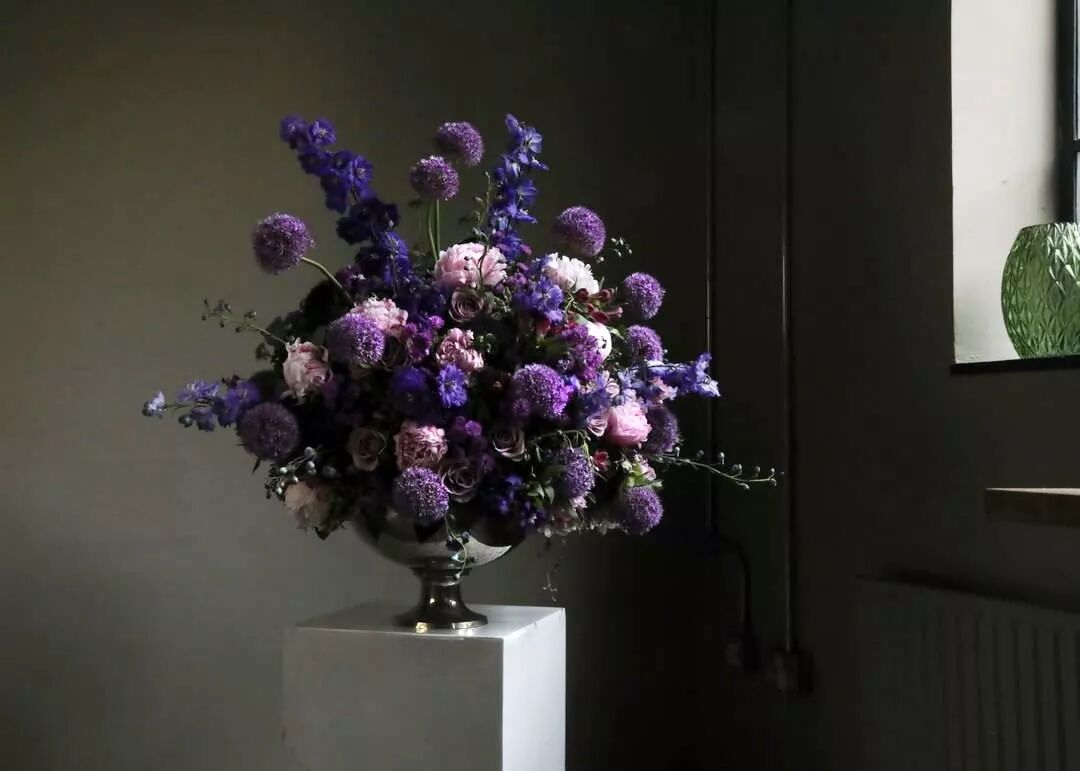 英式花艺强调自然、优雅的风格,尤其喜欢使用大量鲜艳的花材营造一种分量感。传统英式设计通常以铁艺为架构,会追求工艺的细致度,选材比较严谨,在工艺的精致上追求完美。