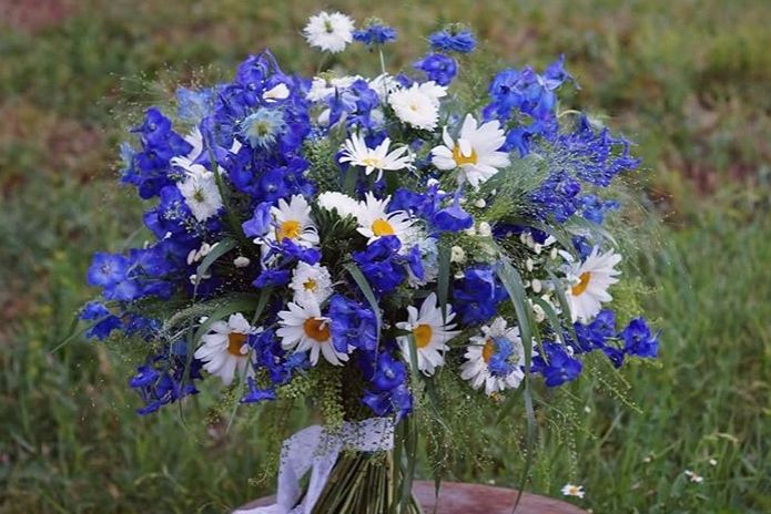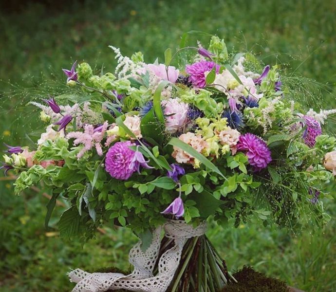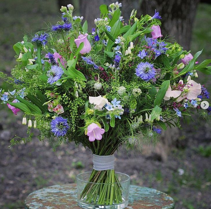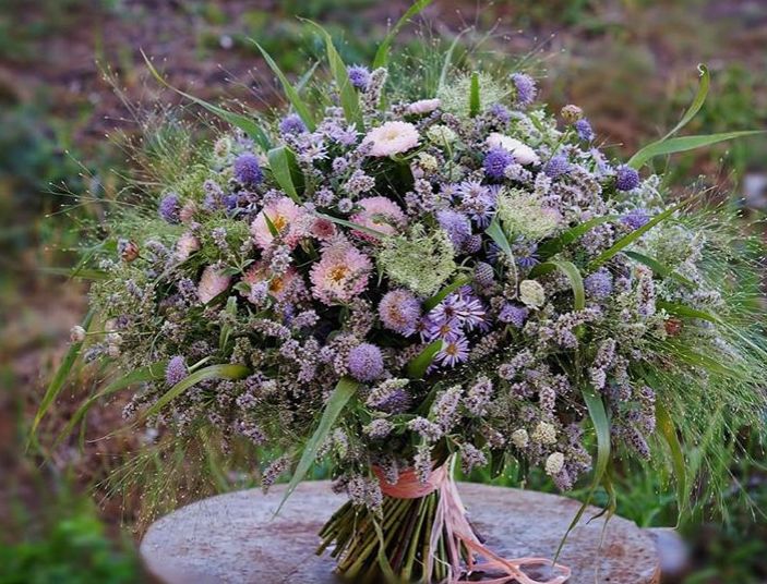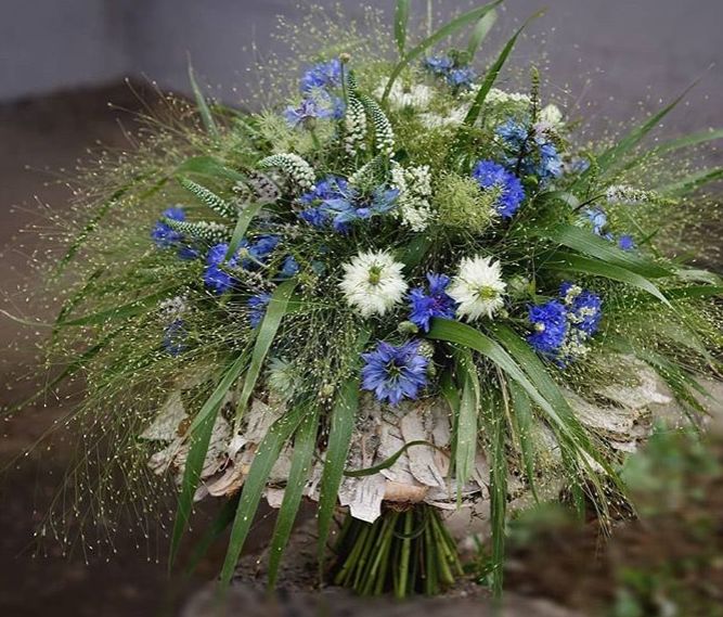 森系花束通常使用野生或野花风格的花卉,如野草、小花、蓝雏菊、银叶菊等。这些花卉的特点是形态各异,颜色多样,能够模仿森林中不同种类的植物。