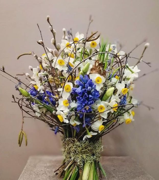 除了花卉,森系花束常常使用自然材料作为点缀,如树枝、藤蔓、苔藓、松果等。这些材料增加了花束的质感和深度,同时强调了自然主题。