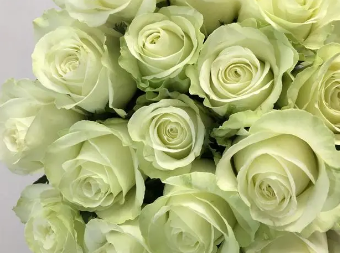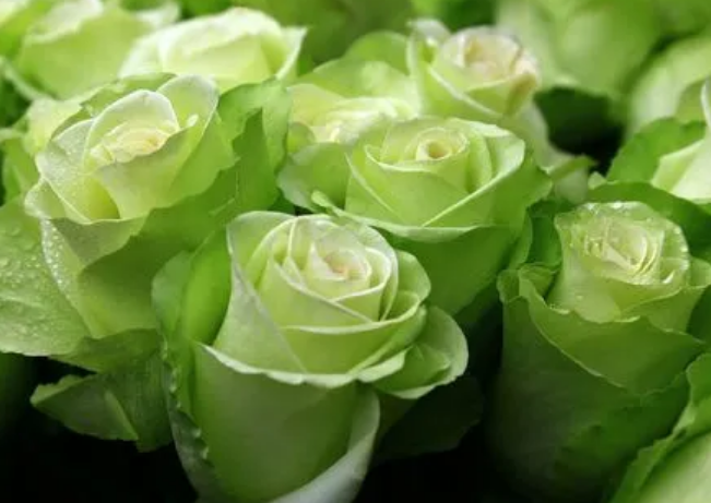 6.绿玫瑰,传说中来自以色列,也名叫碧海云天,真正的绿玫瑰是不存在的,切花“绿玫瑰”实为现代月季。绿玫瑰是一种非常罕见的玫瑰花品种,它的颜色青碧、清新,给人一种独特、清新的感觉。绿玫瑰的花语是纯真、简朴、青春永驻和永不老去的爱情,是一种非常适合表达年轻、美好情感或者用于特殊场合的鲜花。然而,绿玫瑰在现实生活中并不存在,只是一种传说中存在的花卉,因此也更加神秘、珍贵。