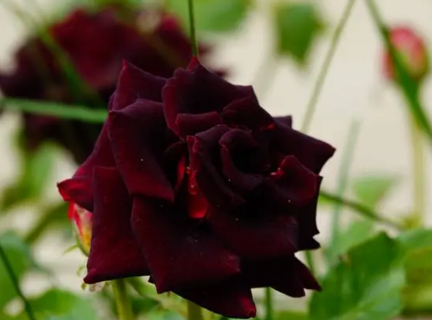 5.黑玫瑰,其实是黑色月季,常见的黑色月季切花有两种,一种叫“黑魔术”,花型规则美观,厚厚花瓣上黑色中透着红色,红色中又透着黑色,有种厚厚的绒感,给人以华贵神秘之感;另一种叫“黑美人”,花型稍小,精巧别致,花色黑红厚重,闪烁着黑金丝绒般的光泽。黑玫瑰是一种非常神秘、高贵的玫瑰花品种,它的颜色深邃、神秘,给人一种独特、魅惑的感觉。黑玫瑰的花语是独立、自主、坚毅和神秘,是一种非常适合表达个性或者用于特殊场合的鲜花。黑玫瑰在日常生活中比较稀有,因此也更加珍贵,是一种非常有特色的玫瑰花品种。