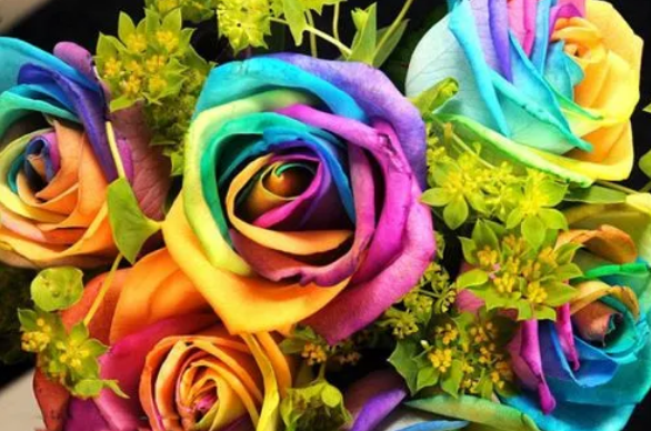 9.彩虹玫瑰,其实是由白玫瑰变化而来,具体的培育方法是在白玫瑰的培育水中添入各种食用色素和染料,白玫瑰的茎部吸收这些染料后,再经过花瓣吸收后就形成了如此娇艳的彩虹玫瑰。彩虹玫瑰又称幸福玫瑰,是由荷兰花商彼得·范德·威尔肯所拥有的花卉公司推出的一种玫瑰花。彩虹玫瑰的花瓣呈现出多种颜色,让人眼前一亮,其色彩艳丽,但是花朵相对普通玫瑰更易凋谢,也几乎没有香味。该产品专为追求新奇感的时尚人士特别研发,无论是做为家庭装饰,还是男士送给情人的礼物,彩虹玫瑰自然都是非常特别的选择。