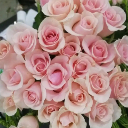 2.戴安娜:粉色玫瑰的一种,粉白色,有时候偏粉红色。戴安娜玫瑰是一种粉色的玫瑰,属于高产量、直立性很强的粉色切花月季品种。它的花瓣数量多,花头大,颜色稳定,外瓣短,内瓣逐渐加长,高心卷边。戴安娜玫瑰在云南的种植量较大,它是一种少女而梦幻气质的花,让人联想到初恋的青涩甜蜜和初次悸动时辗转反侧的感觉。戴安娜玫瑰的花语是感激、幸福、优雅和温柔浪漫。可以送给老师或父母长辈表达感激之情,也可以送给恋人表示希望与其永远幸福地生活下去。
