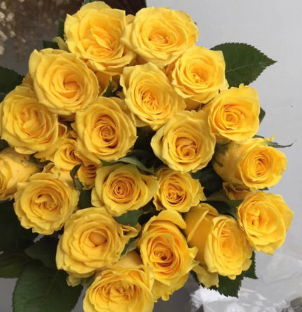 8.金香玉:早些年比较好卖的黄色玫瑰品种。金香玉玫瑰是一种非常美丽的黄色玫瑰,也是切花月季中的高档品种。它的颜色呈金黄色,以其有优雅的姿态、明亮的颜色,成为人们喜爱的花卉。金香玉玫瑰的花语是代表纯洁的友谊和美好的祝福,适合送给好朋友表达友情和祝福之情。这种玫瑰花需要适宜的生长条件和精心的养护,才能保持其美丽的外观和持久的芬芳。