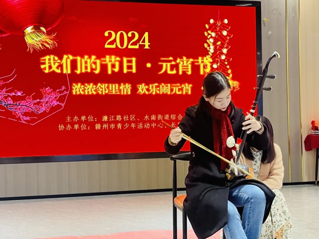 在赣州市章贡区濂江路社区,赣州市青少年活动中心艺术团的师生们为社区居民们带来了一场精彩的文艺演出,二胡独奏《赛马》、歌表演《阳光下的心愿》、《能不能不要说再见》等节目轮番上演,赢得了居民的阵阵掌声,为社区营造了喜庆、文明、祥和的节日氛围。