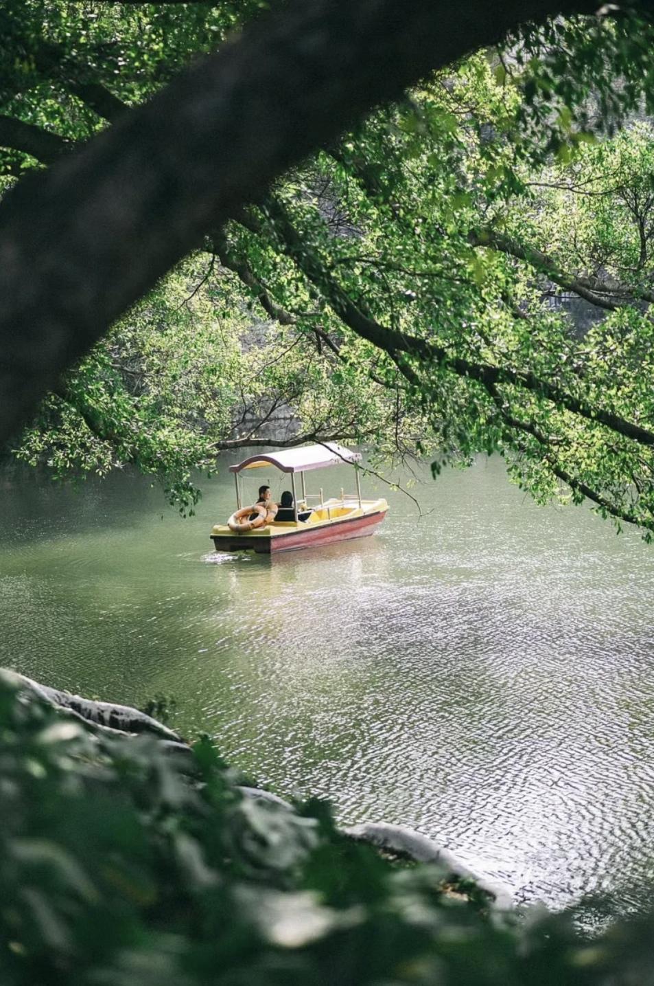 在傍晚时分,与三两好友租个脚踏船。一起泛舟于湖上,享受傍晚微风拂面带来的清凉,空气中也伴随着夏日独有的青草味,让人沉浸在惬意的时光里。