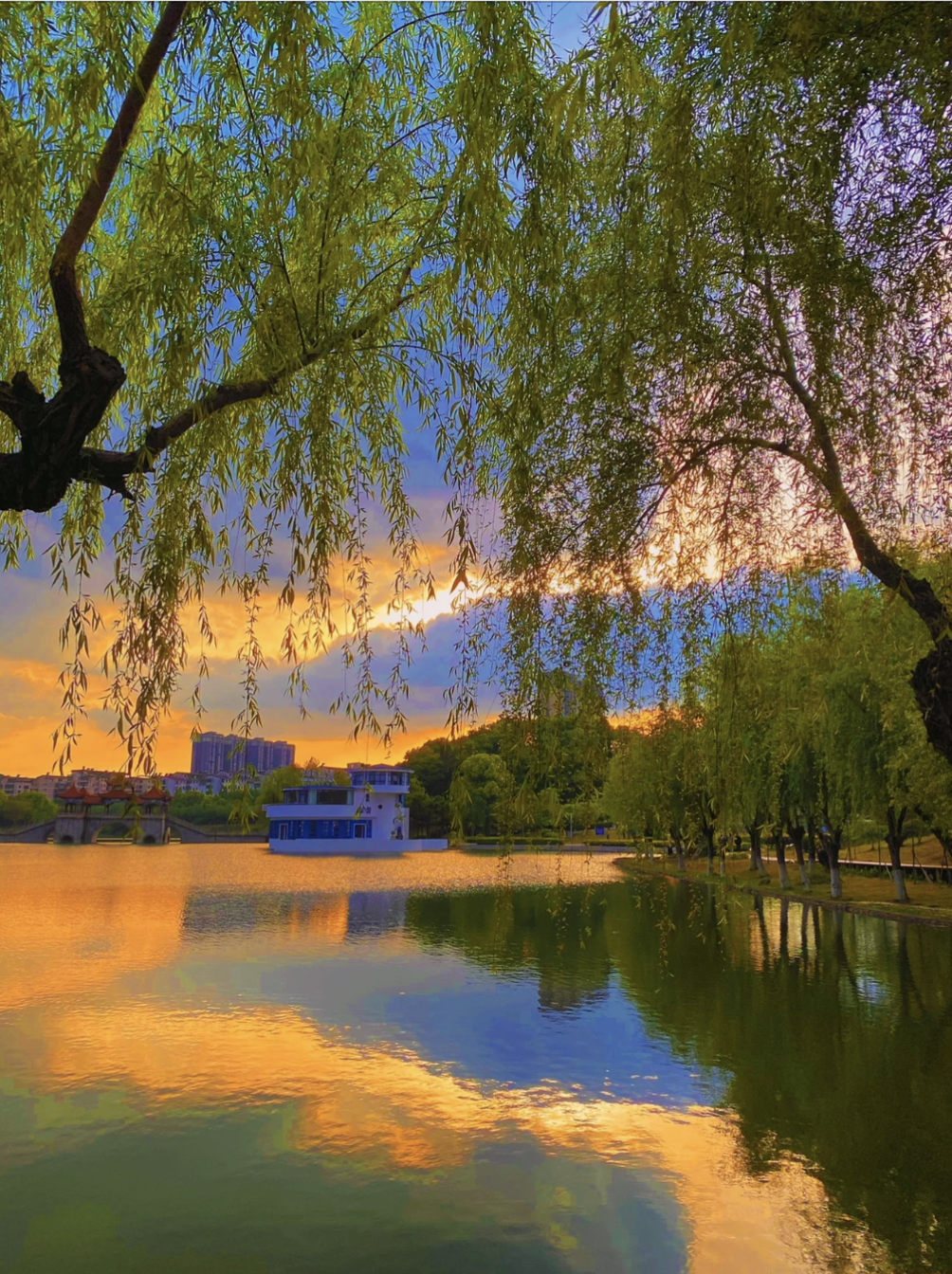 无论是春水摇曳花月流淌,亦或是波光粼粼如花绽放。每当夏日傍晚,落霞与孤鹜齐飞,秋水共长天一色之时,最纯粹的袁州味道,就这样,在袁山公园淋漓尽致的蔓延开来。