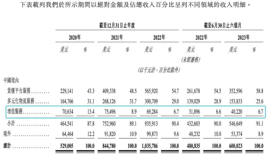 招股书显示,2020年至2023年上半年,货拉拉的增值服务营收分别为7063.4万美元、7549.6万美元、6928.4万美元和4022万美元。