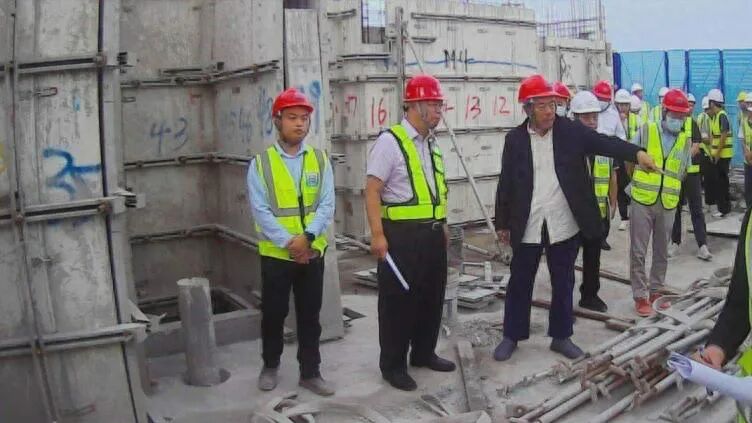 从现场图片可以看出,杨国强正在陪同曹江林在现场考察。