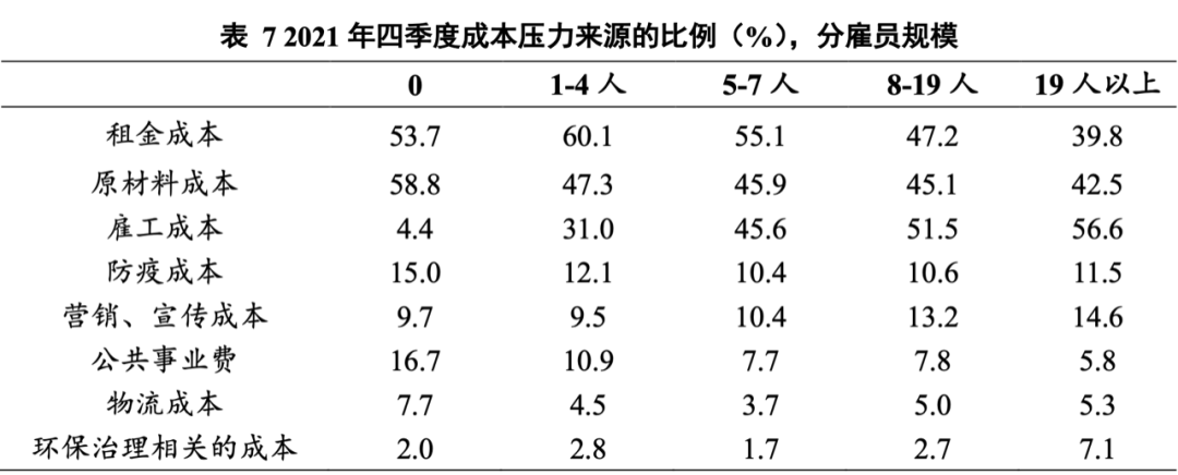 小规模商户感受到租金成本带来的压力更大:原材料成本、防疫成本、公共事业费等对于小规模商户的经营成本来说,往往占比更高,所感受到的成本压力也更大,而较大规模商户感受到的成本压力更多来自于雇工成本、营销、宣传成本等。