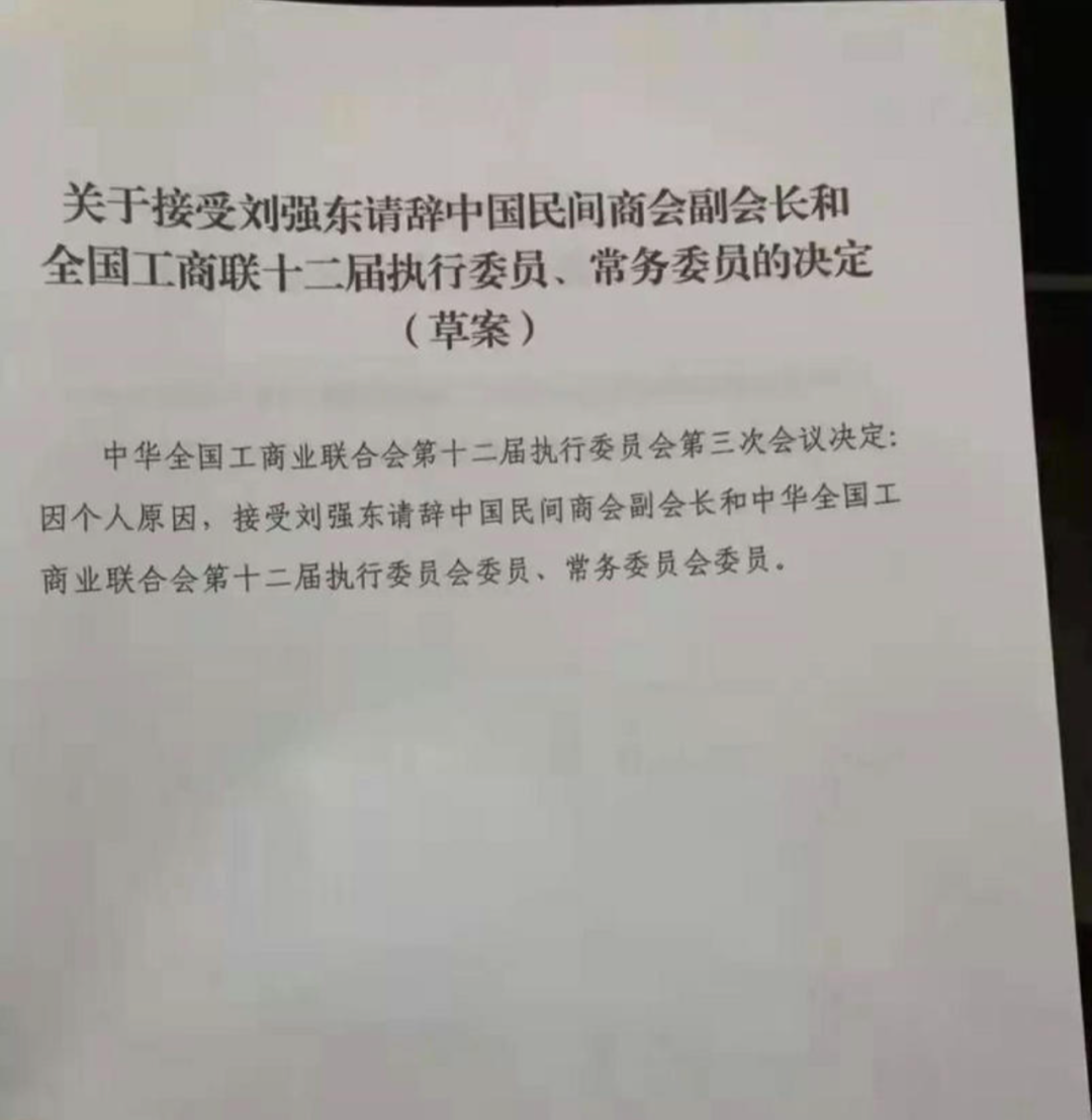 一个多月后,刘强东因个人原因请辞中国民间商会副会长等职务。