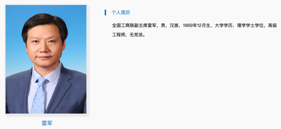 雷军目前的政治职务也不少,现任第十三届全国人大代表,全国工商联副主席,北京市工商联副主席等。