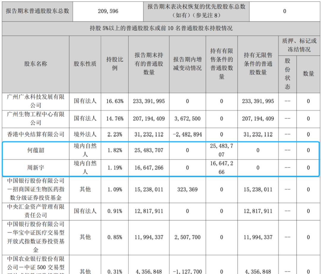 此外,何蕴韶位列公司前十大普通股股东,持股1.82%。
