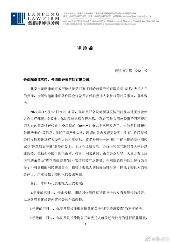 不过,随着“新十条”落地,全国各地放开了管控,此时,关于连花清瘟的谣言又铺天盖地来了。