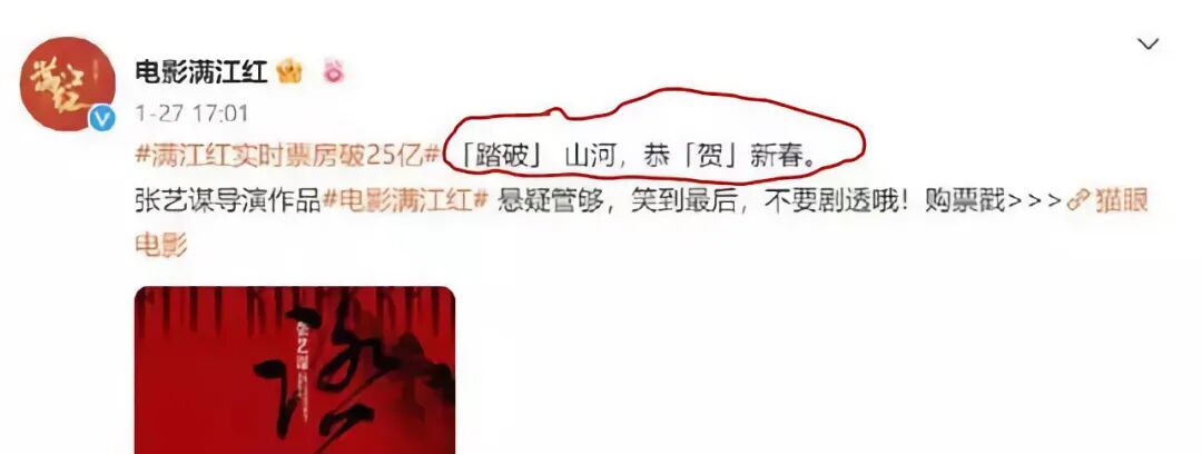 比如,1月26日发了一条微博,内容为不忘靖「康耻」,忠义「犹末」尽;1月27日发的微博内容为:“踏破”山河,恭“贺”新春。