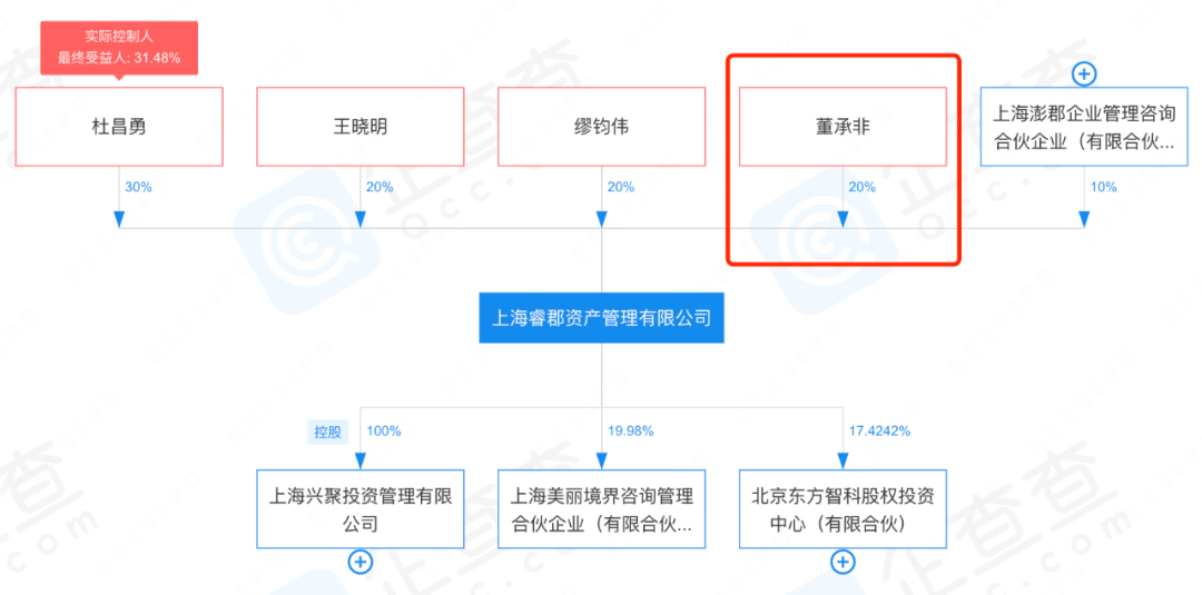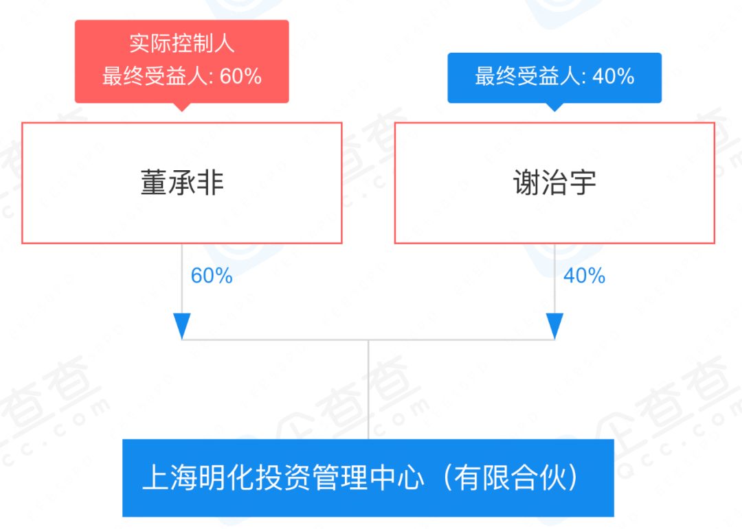 企查查显示,董承非名下共有2家企业,在上海明化投资管理中心(有限合伙)担任执行事务合伙人并持股60%,在上海睿郡资产管理有限公司持股20%。