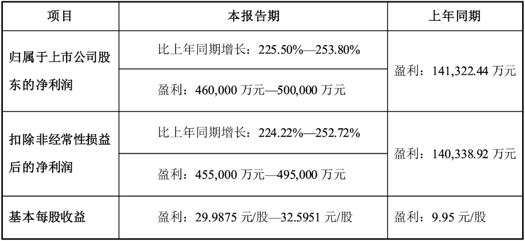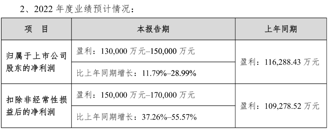 该公司发布的业绩预告显示,2022年净利润在46亿-50亿之间,增长225.5%-253.8%。