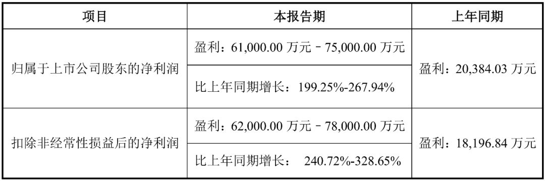 该公司发布的业绩预告显示,2022年净利润为6.1亿至7.5亿,最高增幅达267.94%。