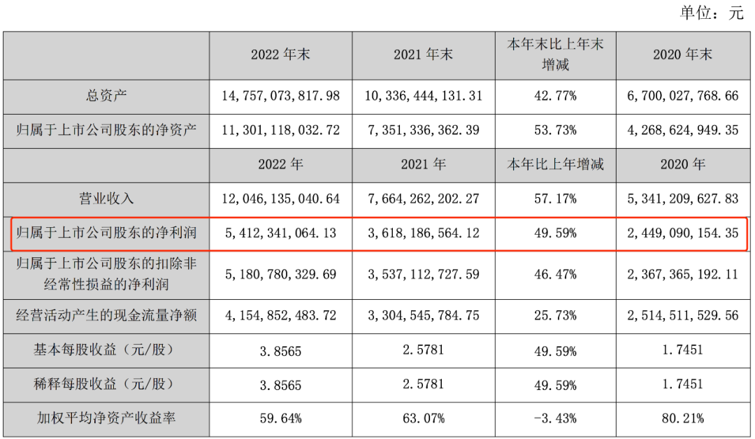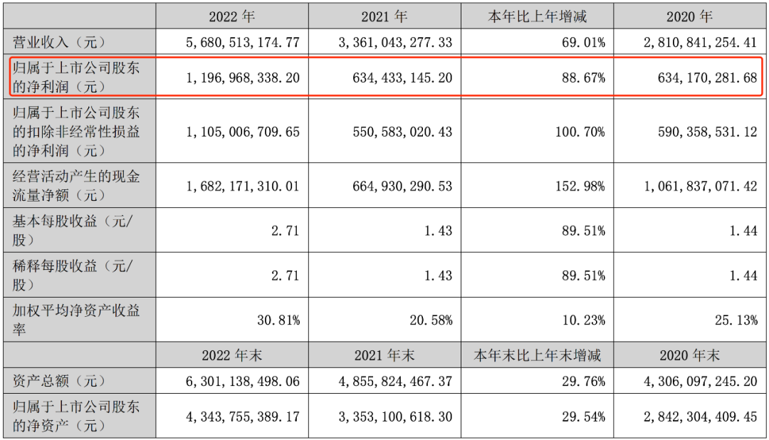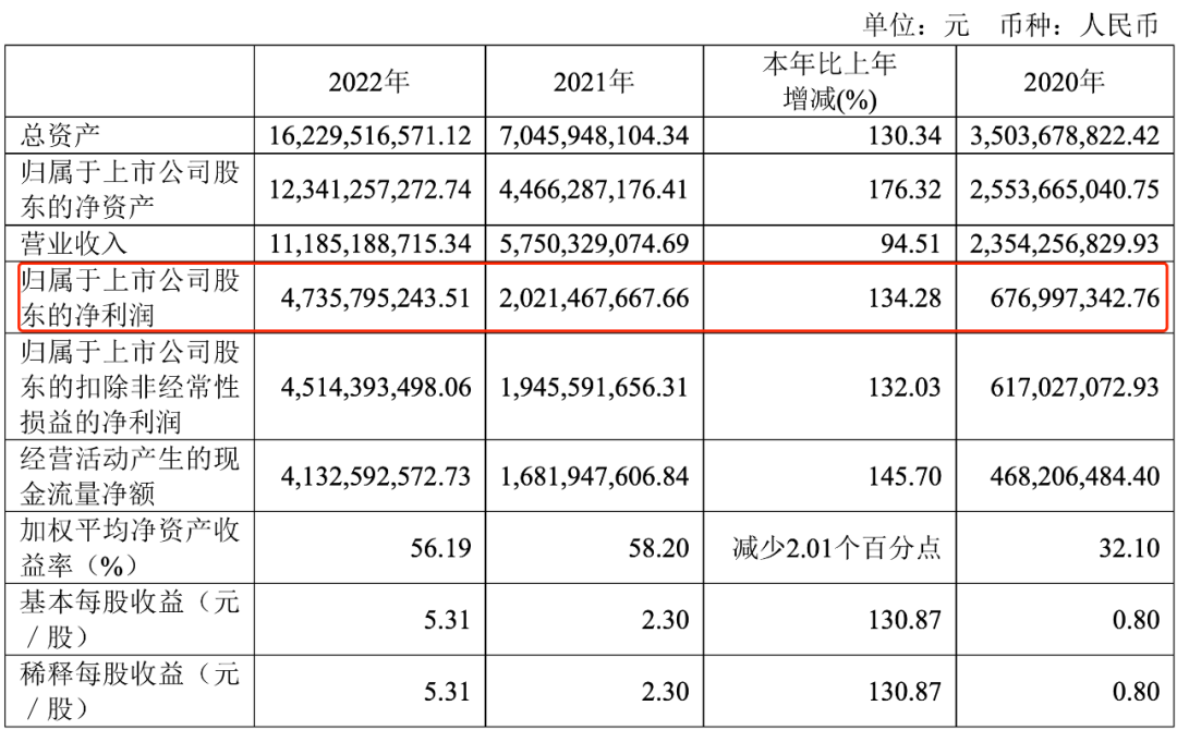 2022年该公司营收111.85亿,和2021年相比,几乎翻了一倍。净利润47.36亿,增长134.28%。