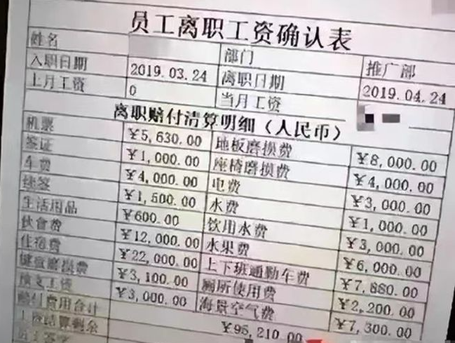 这简直是毫无人性可言的血腥剥削!公司要求员工对办公设备的正常磨损进行高额“赔偿”,甚至对员工呼吸过的空气收费,这种“居住空气费”的要求无异于敲诈。员工平日辛勤工作创造的劳动价值,被这些诈骗集团肆意榨取一空。这种黑心的做法令人发指!