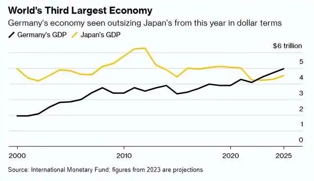 根据国际货币基金组织(IMF)的预测,德国或将在2023年取代日本,成为世界第三大经济体。