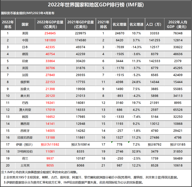 2022年世界国家和地区GDP排行榜 (IMF版)