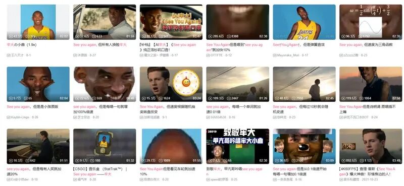 于是在接下来的几天内,仿佛是打开了潘多拉魔盒,各类关于科比与《See You Again》的视频频繁出现在我的主页推荐上。
