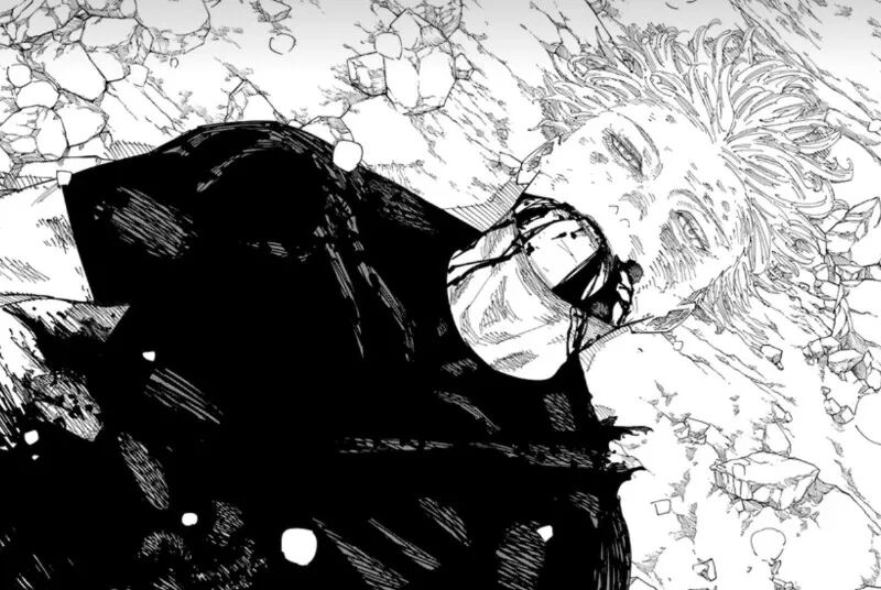 先交代一下前因后果,漫画中战力天花板两面宿傩和五条悟的战斗已经进入了最高潮。在上一话中,五条悟通过极富创造力的操作重创宿傩,宣告了自己的胜利。仅仅一周之后,这位“现代最强”就殒命当场。暴毙之突然,嗝屁之迅速让绝大部分粉丝都始料未及。网友们纷纷吐槽作者芥见下下的剧作能力和人物刻画,不出意外的话,JUMP编辑部的快递代收点已经存了不少刀片了。