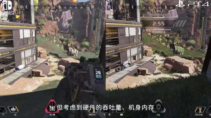 而要说真正因NS的机能而劝退我的游戏,还要当属《APEX英雄》。刚开第一把游戏,我便怀疑自己是不是有什么大病,非要顶着30帧和糊成一片的画面等条件来负重训练(还不一定能稳30帧)。