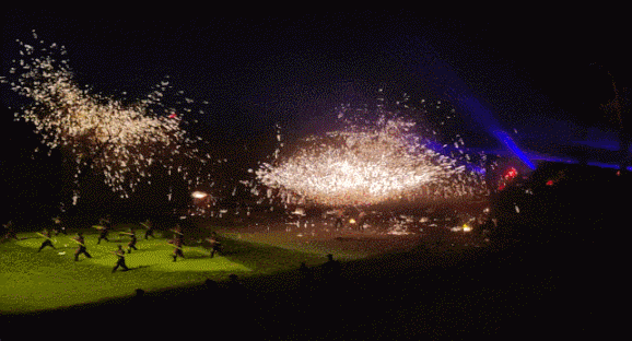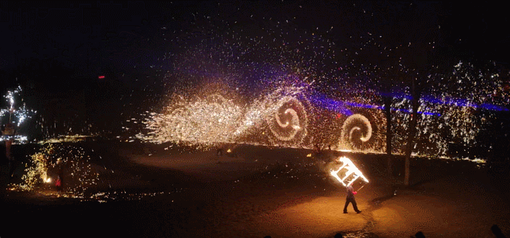 音乐逐渐激昂,气氛逐渐走向最高。有人执火而出,全速奔跑,宛如永夜燃烧之战马;有人傲然而立,火焰一般的立方体和呼啦圈在他手中如臂指使,旋转不息……更多的人开始出现,更多的马儿开始奔腾,直到铁花后的光芒也开始高速旋转,直至场上情绪达到高潮,直至场地再无一丝黑暗——伴随着最后的一声炮响,天空中炸开了真正的烟花。