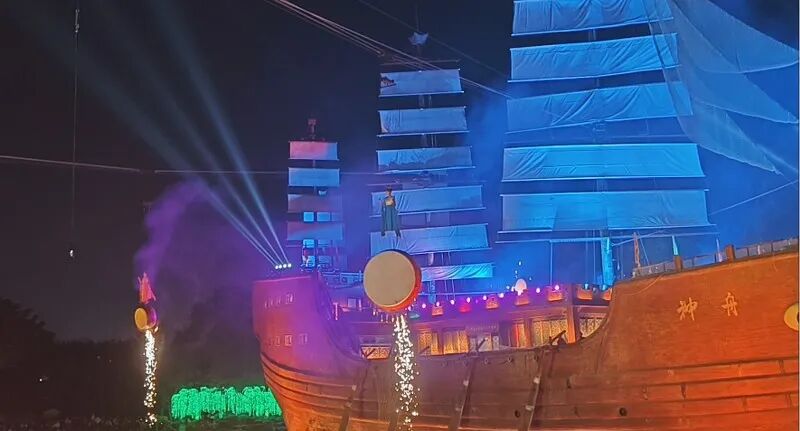 我们随着人群流动,自是应接不暇。直到最后,我们走向了园区夜晚的压场节目: