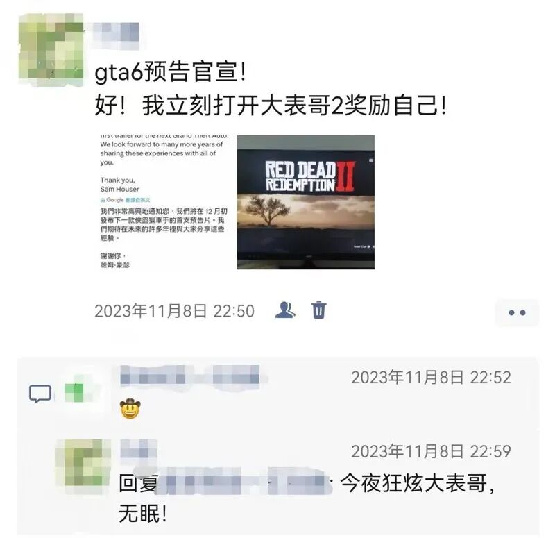 官宣推文放出的那天,作为R星粉丝的我欣喜若狂,并立刻在朋友圈宣布我要重打一遍大表哥2。