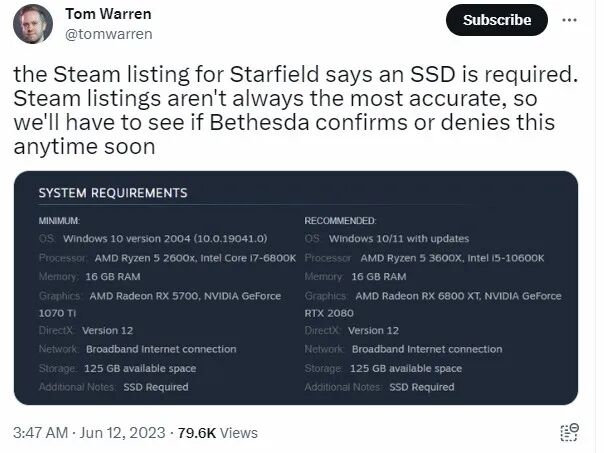 不管这句话正确与否,至少从《星空》和2077DLC往日之影的新公布的配置需求来看,固态硬盘似乎已经有种3A大作入场券的感觉,并且在现在这个时间点来看,这张入场券貌似还不算很贵。