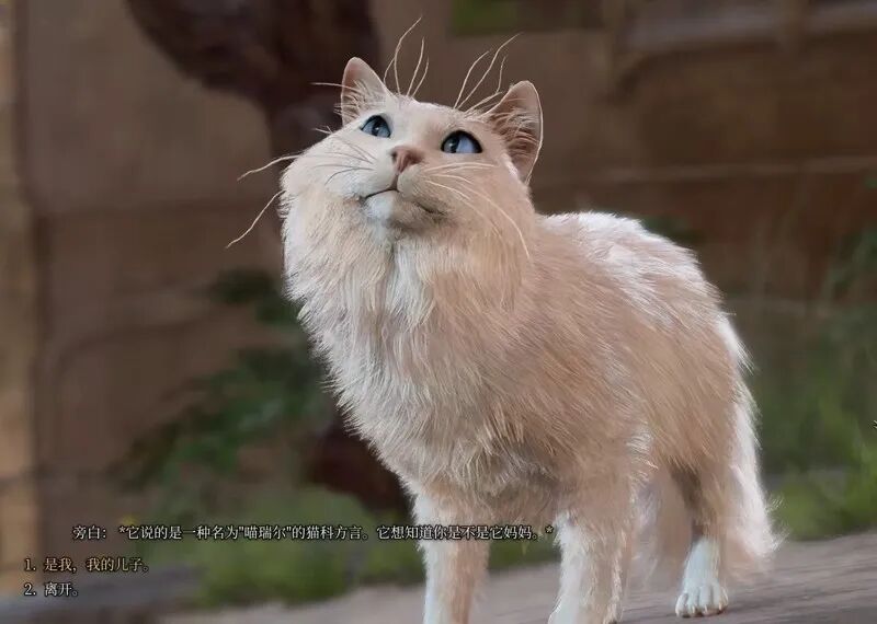 《博德之门3》里的猫猫可不少,有因为官方补丁长出了毛,最后又被玩家抱怨改了回去的无毛猫“陛下”,也有把玩家角色们称作猩猩仆人的贪睡猫咪“小手铃”,不过最让我印象深刻的,那肯定还是第三章大街上的那只方言猫猫。