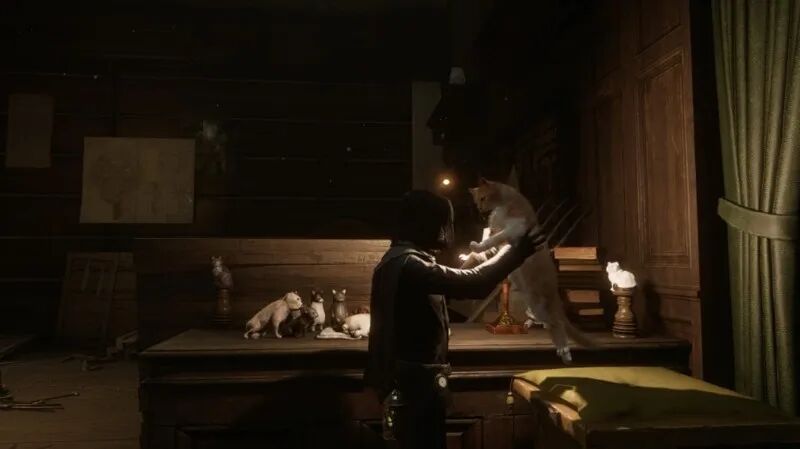 回想起几年前的《审判之眼》,我总感觉那时候的猫咪们,还都习惯于在游戏的角落里藏着掖着,没想到如今,已经有越来越多的游戏愿意把在游戏中加入猫猫,或是把它们放到更显眼的地方让玩家们来加以互动了。