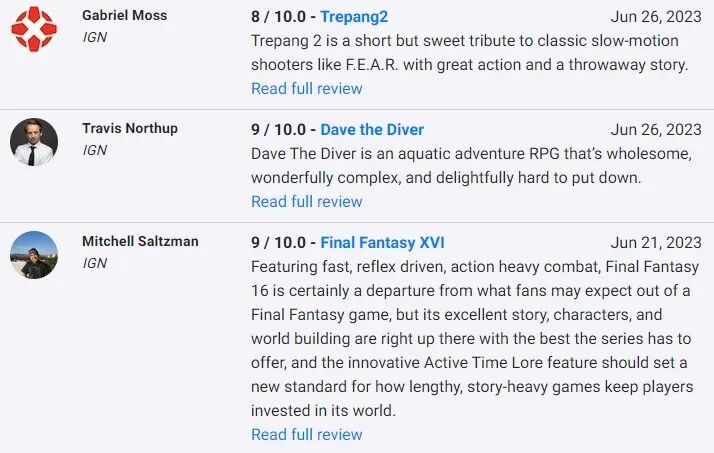 一个很容易被忽略的事实是,即便是同一家评分媒体,为不同游戏评分的也是不一样的编辑。IGN在同一时间段发布的评测,基本都由不同编辑来写。其每个人的游戏审美、分数标准一定是有所区别的。