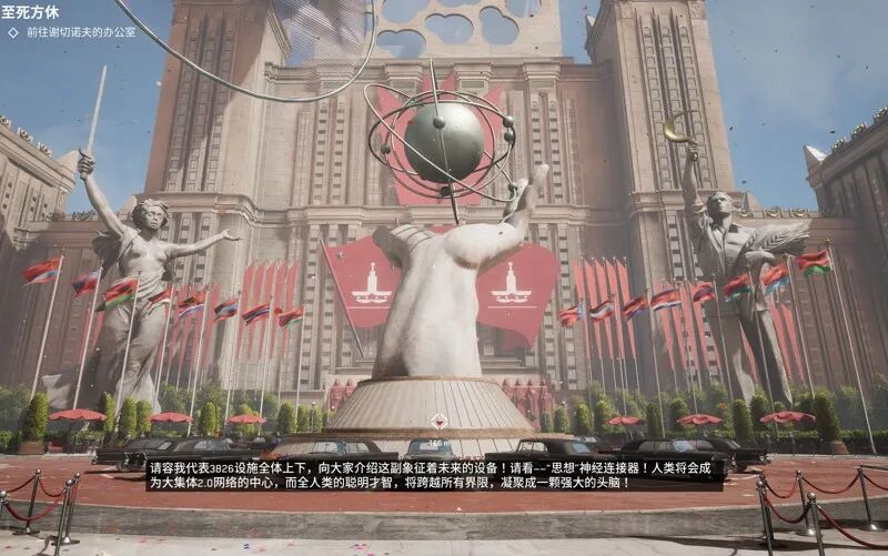《原子之心》里充满着放荡不羁的狂想,遍地都是充满科幻感的机械,似乎并没有多少来自现实里的杂物供我纠结,但这个架空世界在我眼里却又那么现实,楼里挂满了伟人的肖像,院子里是代表工人的雕像,而游戏里的角色,诸如谢切诺夫、巴浦洛夫,都是俄国历史上著名科学家的名字。