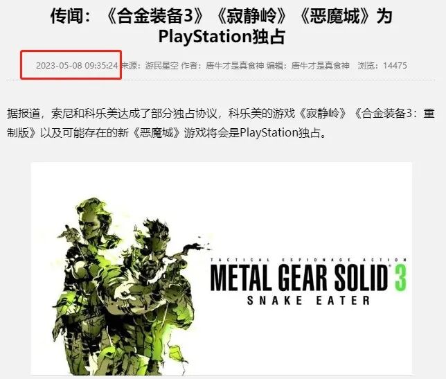 这个传闻更早其实更追溯到三月,当时就有外媒爆料科乐美即将在E3正式公布《合金装备3》重制版的消息,结果今年E3好死不死地取消了。