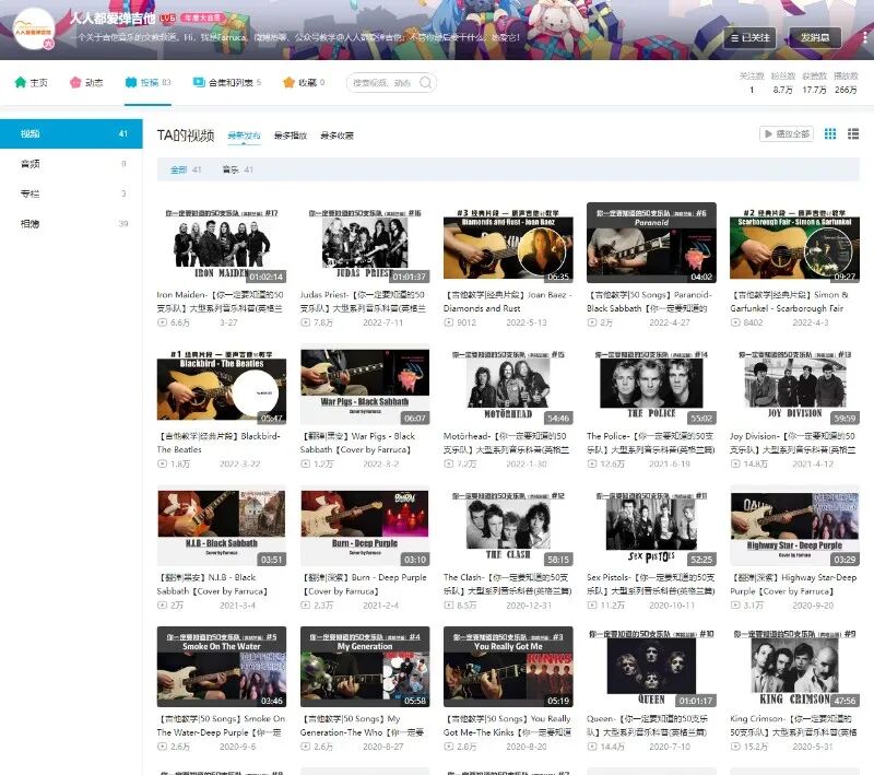 看起来像是营销号,但实际上视频质量高得吓人,著名摇滚乐队的历史讲起来各个一小时起步,质量堪比纪录片,可以说是摇滚爱好者or想了解相关内容的人士必备。唯一的缺点就是更新太慢,不过质量高到值得反复观看。